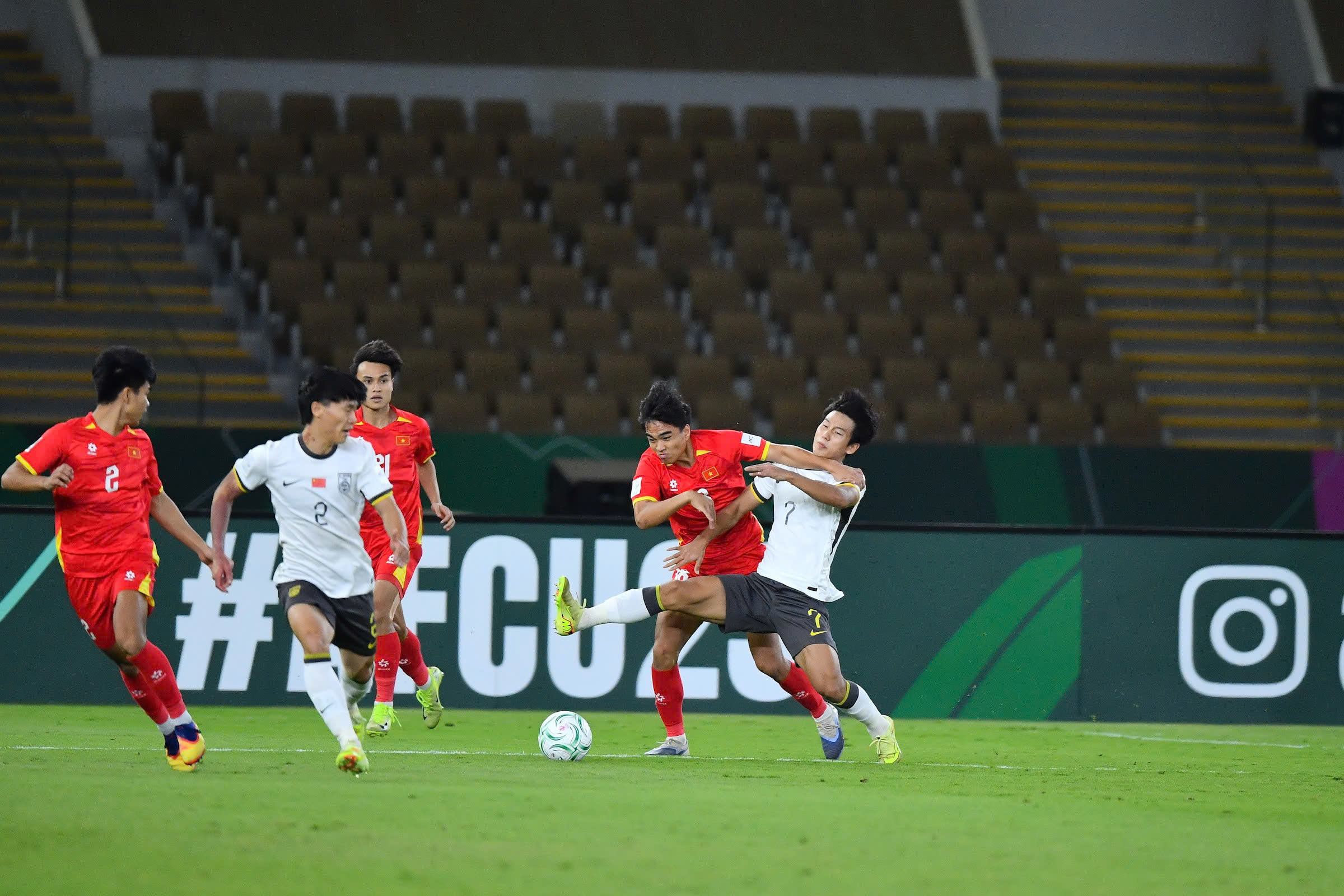 Trong hiệp 1, U23 Trung Quốc cầm bóng tới 63%, song các pha lên bóng của họ chưa thực sự sắc sảo và chủ yếu dừng lại ở những cú sút không trúng đích. Ở chiều ngược lại, U23 Việt Nam dù không có nhiều cơ hội nhưng vẫn tạo ra những tình huống đáng chú ý.