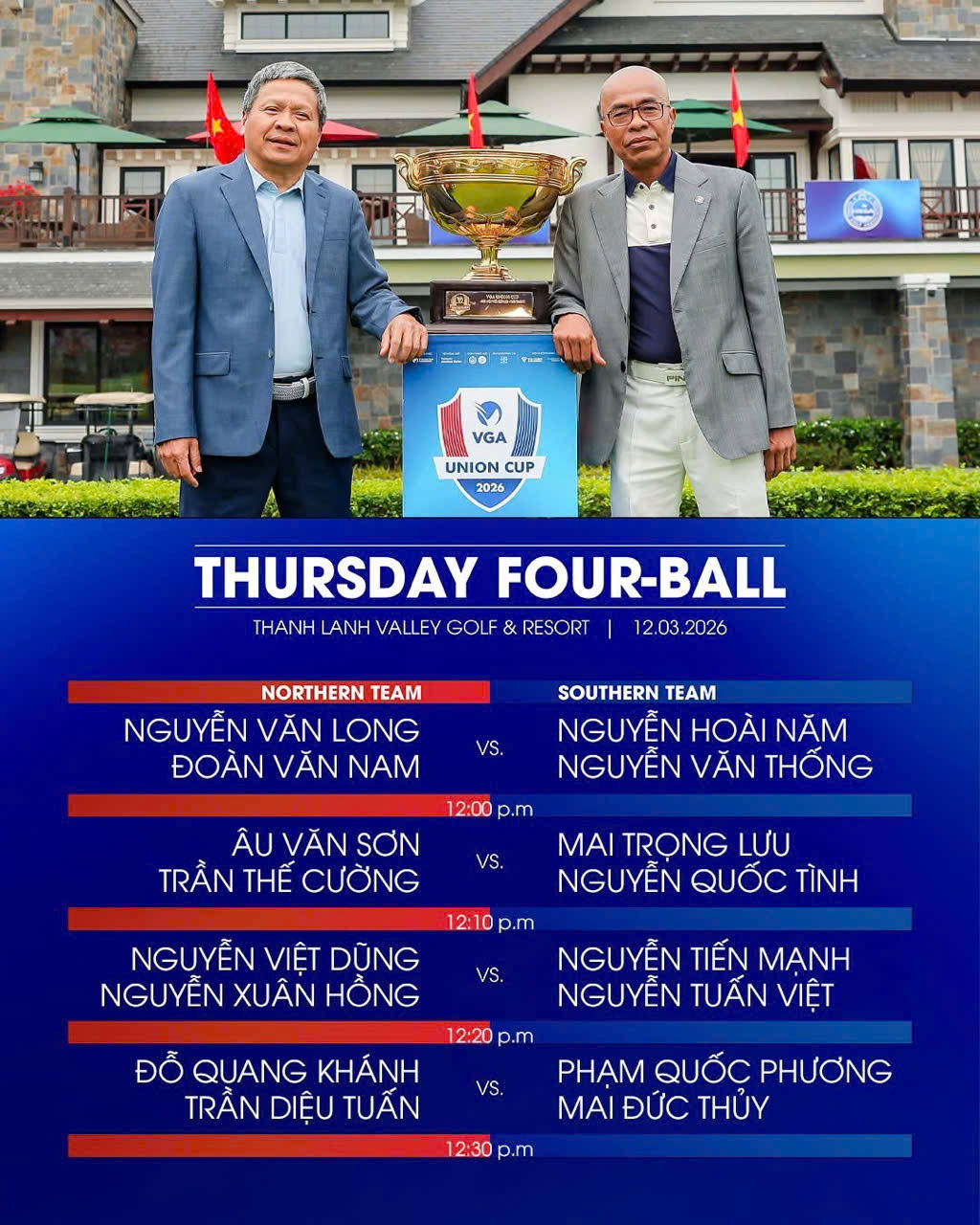 Các cặp đấu được Ban huấn luyện hai đội lựa chọn là sự kết hợp giữa những gương mặt giàu kinh nghiệm và các golfer đang có phong độ tốt, hứa hẹn mang đến nhiều màn so tài hấp dẫn ngay trong ngày thi đấu mở màn.