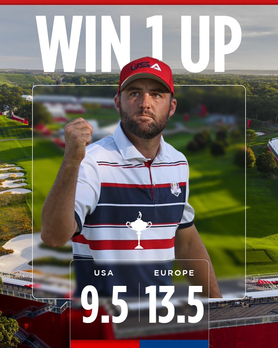 Scheffler đánh 2 on và có 2 putt, giữ hoà hố để có chiến thắng đầu tiên tại giải đấu năm nay, giúp thắp thêm niềm hi vọng. Tin vui tiếp tục đến với tuyển Mỹ khi J.J.Spaun đánh bại Sepp Straka 2&1, khi đó trong các trận còn lại, đội chủ nhà cũng đều đang có lợi thế dẫn điểm hoặc hoà.