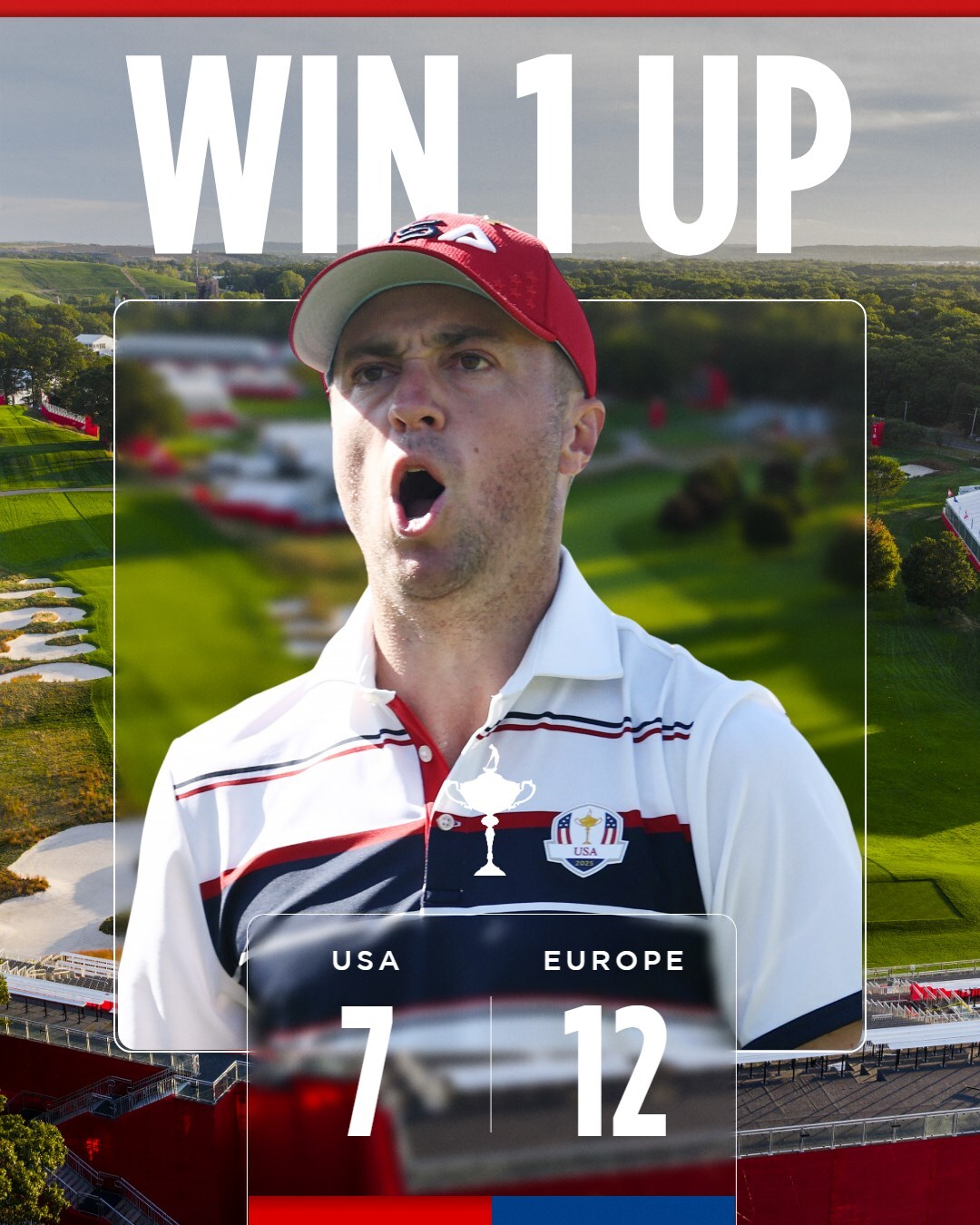 Với việc Viktor Hovland không thể thi đấu, trận Singles Match giữa anh và Harris English tự động được tính kết quả hoà. Qua đó, tổng điểm của hai đội là 12 – 5. Cameron Young, người con của New York, ghi birdie ở hố 18 để giành chiến thắng hố và mang về điểm số đầu tiên trong ngày cho đội Mỹ, khi vượt qua Justin Rose 1Up. Một cảnh tượng tuyệt vời.